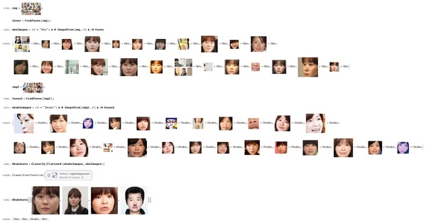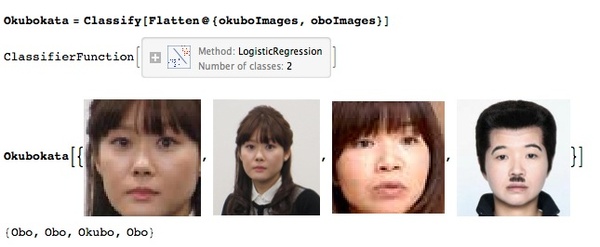 Mathematica 10で機械学習関連機能が数多く追加されたというので、 小保方さんの顔とオアシズ大久保佳代子さんの顔をGoogle画像検索結果で学習させて識別器を作ってみました。作った識別器に、いくつか画像を入れてみたら、本当はオアシズ大久保佳代子さんのはずの画像(一番最後の画像)が「小保方さんです!」と判定されちゃった(他の画像は当たってたけど)。…意外に、小保方さんがおじさん的な仮想したら、こんな感じになったりするのかもしれません。