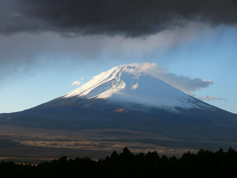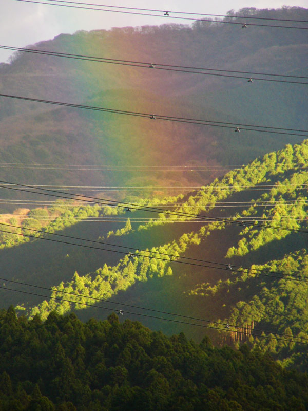 少し歩けばたどり着けそうな、虹の橋桁を眺めて、後ろを振り返ると富士山が雲の間から顔を出している。