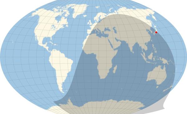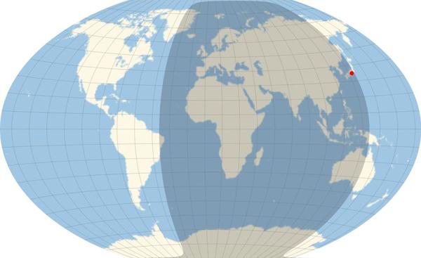 夏至近くの「昼と夜」を描いた世界地図と、春分・秋分の日の「昼と夜」=経度に沿って日の出が始まる世界地図を比べて眺めると、また一度、高緯度地域では夏の昼間がとても長く(冬は夜がとても長い)ことを頭で納得させられます。それでも、「夜9時過ぎでも昼間が続いている」ということは、とても新鮮に感じます。