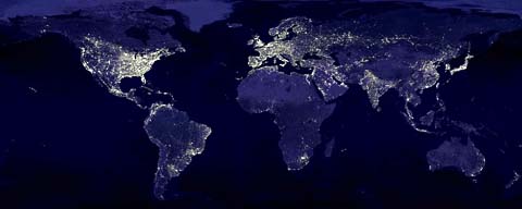 人工衛星(DMSP)から撮影された地球の夜景( City Lights )