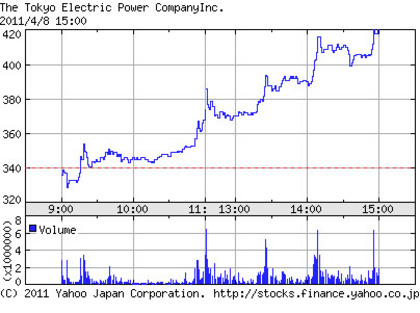 Farst&First情報掲示板経由で眺めた「東京電力の株価と出来高推移」が面白い。制御量(株を売買した数)と目標値(株価)の関係を見つつ、制御アルゴリズムの解析をしてみたくなる、かも!?