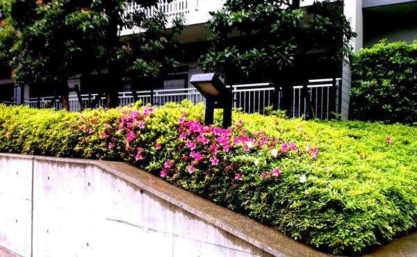 「植え込みの照明灯近く」には綺麗な花が咲いている!?