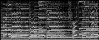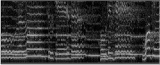 まずは、竹内まりやの「元気を出して」と山下達郎の"So Much In Love"をスペクトログラムで眺めてみる。縦軸が周波数軸で、上に行くほど高い周波数の声である。当然、下に行くほど低い声である。そして、横軸は時間軸で、左の方が時間的に先で、右の方が時間的に後になっている。結局、このスペクトログラムの中にはさまざまな倍音が白い線となって描かれているのである。