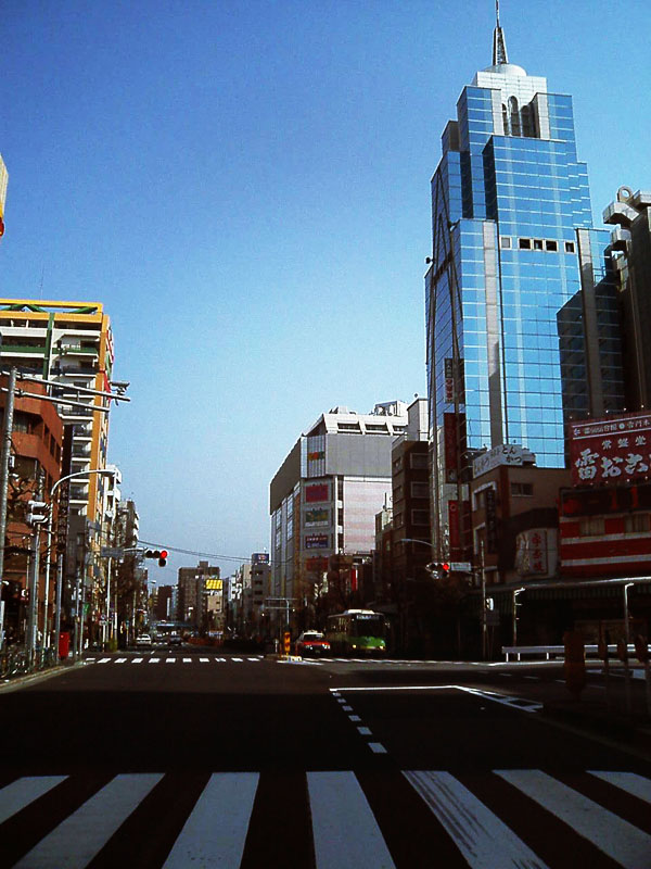 浅草を過ぎるときに、撮った写真が一枚目。なんだか、その場所が持っている雰囲気に暗示をかけられたせいなのか何なのか、空気が少し色褪せて見える。こういうところで、「120°のわたしだけの地平線」を切り取ってみるのも確かに良いかも。タイトルをつけるなら、…「雷おこしと青いビル」