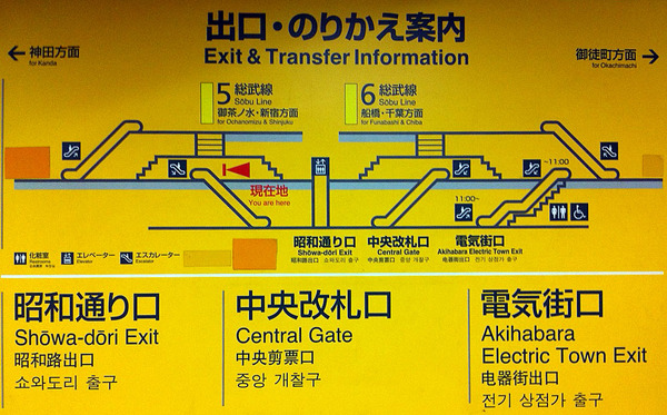 そしてまた、こんなJR秋葉原駅が見せる構造は、一種の「あみだくじ」にも見えてきます。「御徒町方面の真ん中 の高さにあるホームから、神田方面に(ホームという名の)あみだくじ上を歩き出したとしたら…さて、どこに辿り着くでしょうか?電気街口?昭和通り口?あるいは、それらの入り口が閉まっていたら…?