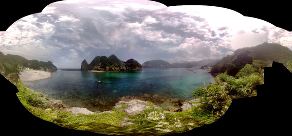 このあたりから2kmほど歩くと、映画「ガリレオー真夏の方程式」のメインロケ地にもなった浮島(ふとう)がある。映画「ガリレオー真夏の方程式」はメインストーリーは全然印象に残らなかったけど、「ぼくの夏休み」風のシーンが何だかとても良い感じで面白かった。…というわけで、浮島集落に行き「事件現場」ならぬ「ひと夏」の夏休みの舞台に足を伸ばして行ってみた。十数年前に来たことがあるような気もするけれど、火山が作り出した海辺の風景がスケールが大きくて良い感じ。