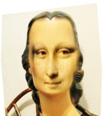 「模型の顔」と「モナリザ」の画像から顔抽出を行い、異画像間で顔合成を行い、「模型の顔」と「モナリザ」の顔を入れ替えた。顔抽出→顔合成を行った結果はモーフィング画像にしてみた。他の人の顔を色々合成してみると面白いかもしれない。