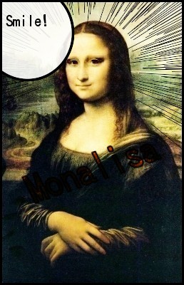 モナリザを美人化し、さらに集中線で顔に視線が行くようにしたもの。吹き出しはGIF動画にすると面白い。吹き出し付きの動画によるメッセージを作成することもできる。