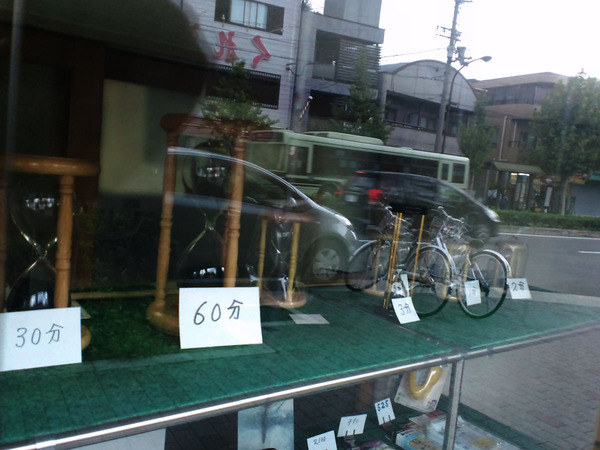 ところで・・・、このショーウィンドウには一体どのくらい昔からこの砂時計が飾ってあるのでしょうか?二十数年前にも変わらずあったショーウィンドウを眺めつつ、この砂時計はいつから時を刻んでいるのだろうか?と考えたのです。