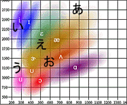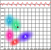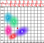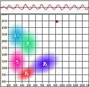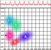 こうフォルマント分析をしてみると、私の「い」「う」「え」は標準的な分布の中に入っていることがわかる。しかし、「あ」「お」はそうではない。