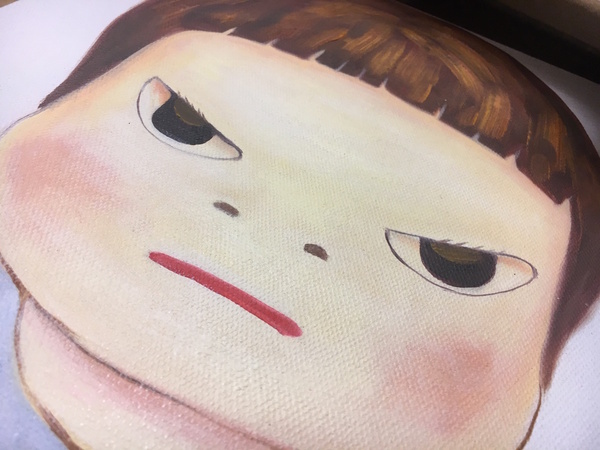 たとえば、下に貼り付けたのは、深圳の油画村(大芬油画村)で買った「油絵」の表面を撮影してみたものです。油絵具材の盛り上がりのようすが見てとれます。こんなようすが、300円程度のレンズとスマホを使って撮影できるのは、結構面白いのではないでしょうか。
