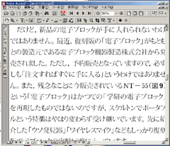 最近のPCであると、ディスプレイは通常横に長い。だから、本来縦に長くあるべきドキュメントを眺めようとする場合には、表示を90°回転させてやることもある。そうすると、本の一ページのようにして画面表示を眺めることができる。例えば、AcrobatReaderで表示画面を回転させたり、PivotProなど使ってPCの画面表示自体を回転させてやれば良いわけである。