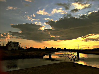 今日、夕日が沈もうとする道の向こうに、浮かぶ雲から「雲のシッポ」が垂れ下がっているのが見えました。そこで、力一杯そのシッポに向かって走ってみました。