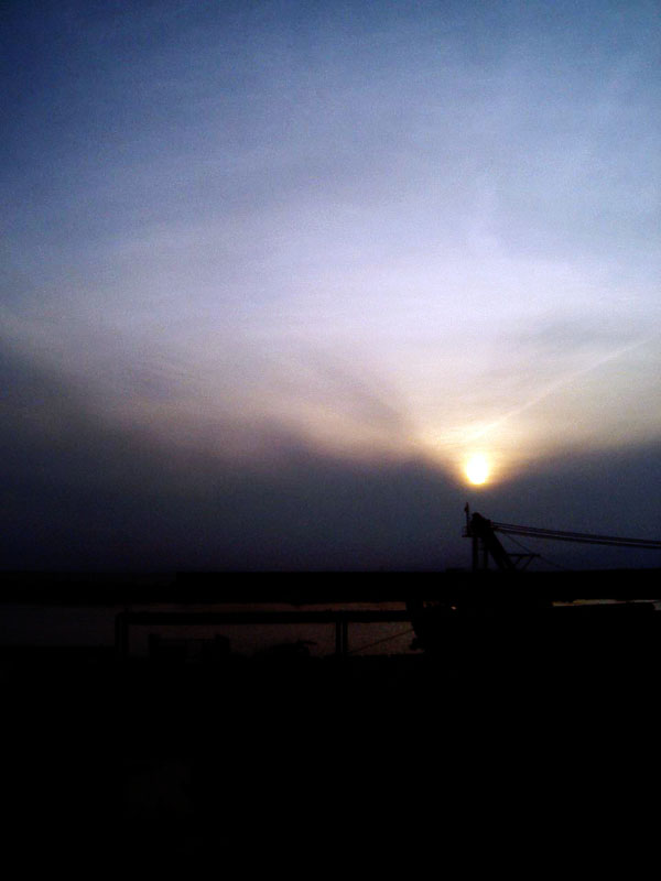 港に行くとちょうど夕暮れ時。足下にはタンポポ(蒲公英=春、中空の花茎の先に黄色または白色の花をつけるキク科タンポポ属の多年草の総称。羽状に裂けた葉は根ぎわから群生。種子は白い冠毛をもち、風に乗って飛ぶ。カントウタンポポ・エゾタンポポ・セイヨウタンポポなど)。