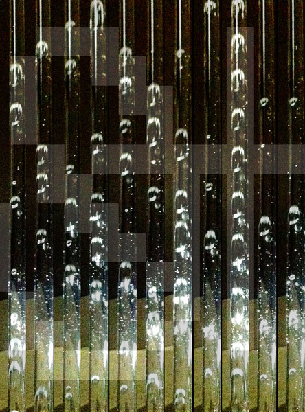 そこで、いきなり2次元面のディスプレイを作る前に、まずは単純な「1本だけ」のユニットを作り・勘所を掴んでみることにしました。…というわけで、作ってみたのを動かしてみたところが、下に貼り付けた動画です。透明な柱の中を浮かび上がっていく泡に向けて光を当ててみると、意外なほどに綺麗です。