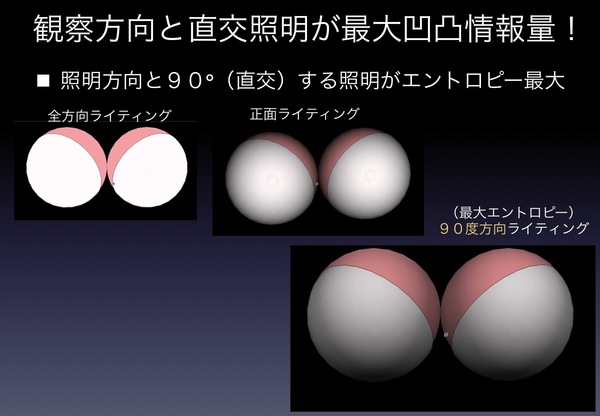 情報理論で「胸」の「CG光源レンダリング」や「陰影の付け方」を学んでみよう!(上部直交2方向から照らすのが情報量=エントロピー最大のバスト盛り上がり最大条件です!?)を書きました。