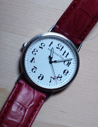 腕時計を手に取りつけようとすると、針が止まっていることに気づきました。夜の間に、電池が切れてしまったようです。(ちなみに右の腕時計は、反転・逆さ印字タイプと言う風変わりなものです。ですから、写真が一瞬変に見えるかもしれませんが、これで正常なのです)