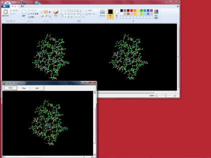 「3D AVS Player+YouTubeでお手軽三次元可視化をしてみよう」の続きとして、今日は、3D AVS Player"で視差画像を左右表示させているWindowを、アナグリフ(赤青メガネ)表示で時々刻々と眺めることができるようなソフトを作ってみることにしました。そのソフトウェアの動作画面が下になります。動作の仕組みはとても単純で、「選んだウィンドーの左半分と右半分を視差画像であるとして、アナグリフ用画像として合成したものをWindowに(20msに一回の割合で繰り返し)表示する」というだけのものです。