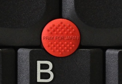 右上の写真は、"PLAY FOR JAPAN"トラックポイントです。その上に掌をおけば、何でもできる・したくなる…そんな心地になるポインティング・デバイスとキーボードです。