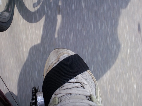 さて、この自作POWER GRIPSを付けた状態で、軽く自転車に乗ってみると、靴を差し入れる動作にワン・アクション(or one more)必要ですが、とてもお手軽かつ安全に足とペダルを一体化させることができました。