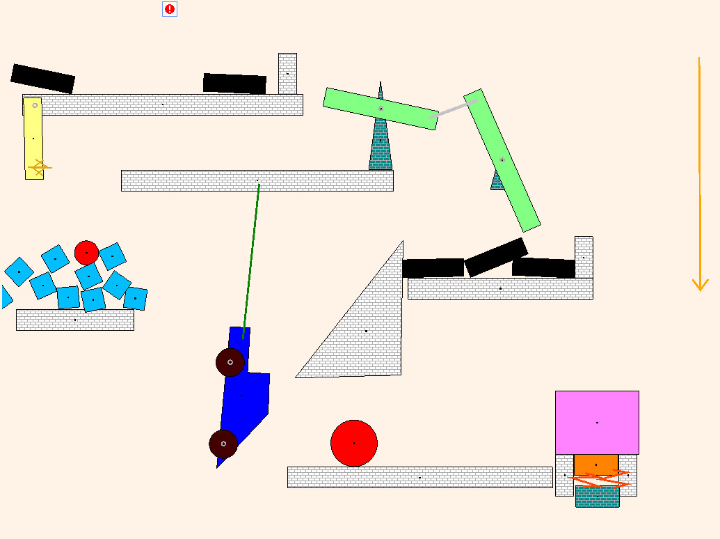 ちなみに、右上の画像はそんなラクガキ物理シミュレーションの実効例です。「ピタゴラスイッチ」のカラクリ仕掛け「ピタゴラそうち」のようなものをラクガキで作ったサンプル・ファイルです。こういったラクガキ・シミュレーションで遊んでいるうちに、「車が凍結の坂道を登ることは難しいこと」や「四輪駆動の自動車が二輪駆動の自動車より上り坂に強いこと」などを直感的に理解することができるのです。実に楽しく、素晴らしいソフトウェアです。