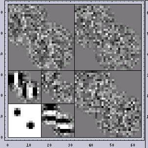 はじめに、2D-FTと2DWaveletの例を挙げる。まずは2D-FTである。![]() | ![]() | ![]() |