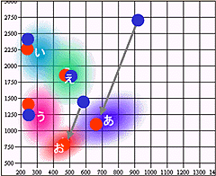 こうフォルマント分析をしてみると、私の「い」「う」「え」は標準的な分布の中に入っていることがわかる。しかし、「あ」「お」はそうではない。