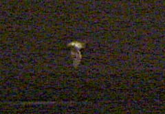 そういうわけで、「バットディテクター」を頼りに「真っ暗な中を飛び回るコウモリ」をデジカメで撮影してみた。残念ながらピントがなかなか合わないのが難点であるが、とりあえず撮影してみた。それが、次の写真である。