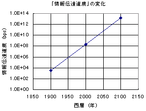 そして、「人類」の中での「情報伝達速度」の変化を示したものが次のグラフである。この速度が「人類」という集合体の中での波の進行速度を決めるのである。
