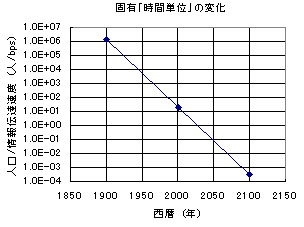 その、人口 / 情報伝達の速度 = 「人類の固有時間」を計算してみたものを次に示してみよう。