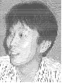 拡大すると、全体像が全く判らなくなるというところは、ASCIIアートと全く同じである。こういった、離れてみると、やっと何が描かれているかわかる、という画像はとても面白い。