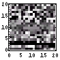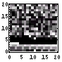 まずは、画像ファイルの「先頭400Byteの可視化画像」を作成する。これは、各ファイル中の各Byteが8bitグレイ画像であると考えて、可視化したものである。以前書いたように、「てんでばらばらに見えるものは冗長性が低く、逆に同じ色が続くようなものは冗長性が高い」のである。もし、同じ色が続くとしたならば、「また、この色かい。どうせ、次もこの色なんだろ。」となってしまう。次の色の想像がつく、ということはすなわち、情報としては新鮮みのないものとなる。つまり、情報量が少ないのである。その逆に、情報量の多いものは、てんでばらばらで次の色(データ)の予想がつきづらいもの、となるわけである。まずは、そのてんでばらばら具合を「先頭400Byteの可視化画像」で確認する。